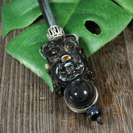 【一点物】チベット天眼石 鬼(オニ) シルバーパーツ サドルレザー ネックレス 長さ調整可能|栃木レザー|天然石|パワーストーン|チベット密教|法具|一点物|【送料無料】
